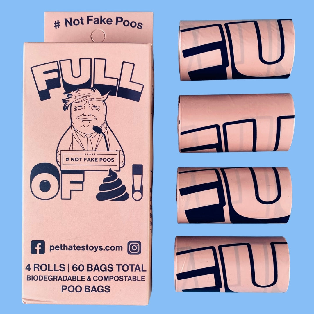 Let's make a laugh out of the things we hate most! Make your dog walks great again and pick up after your pup with our novelty Donald Trump poo bags! These strong, reliable dog poop bags are perfect for daily walks and big dumps (including, but not limited to, those pawlitical statements).